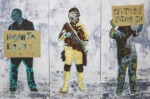 German based painted Lisa Chandler explores protest movements and riots, and the things that divide and define us. The Dividing Line looks at protests from many perspectives including, protesters, security forces and bystanders.